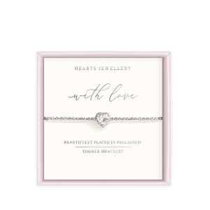 Palladium Plated Cubic Zirconia Heart Bracelet - With Love