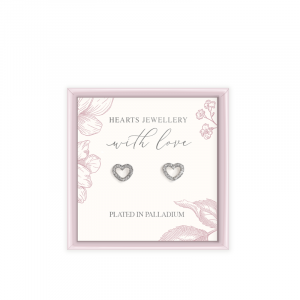 Platinum Plated Cubic Zirconia Heart Stud Earrings