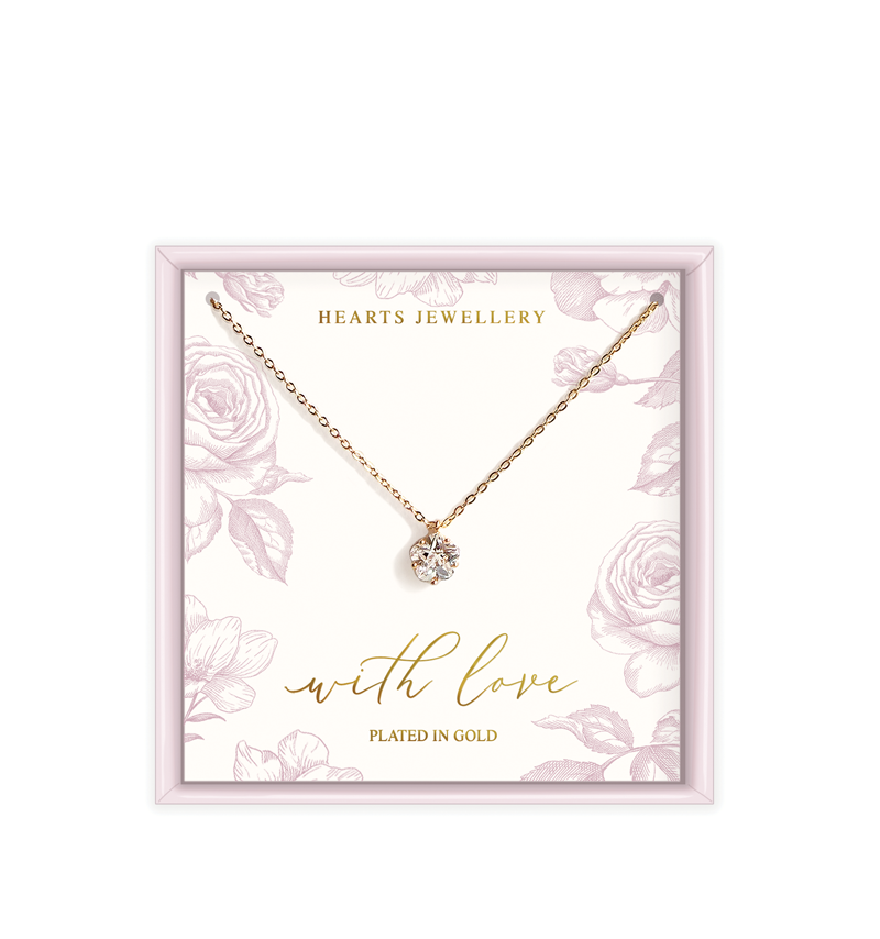 Gold Plated Crystal Pendant Stone Necklace - With Love