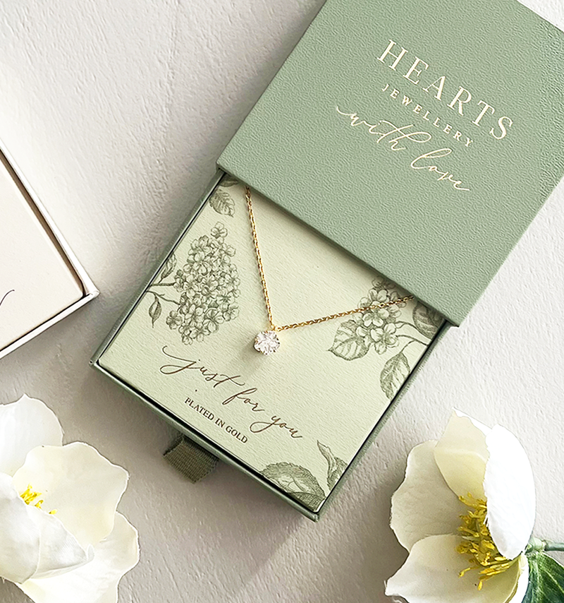 Add a touch of sparkle with this delicate and elegant necklace pendent. Beautifully crafted and plated in real Gold with cubic zirconia crystals. Come with a Gold chain adjuster. Packaged in a gifting box of your choice.