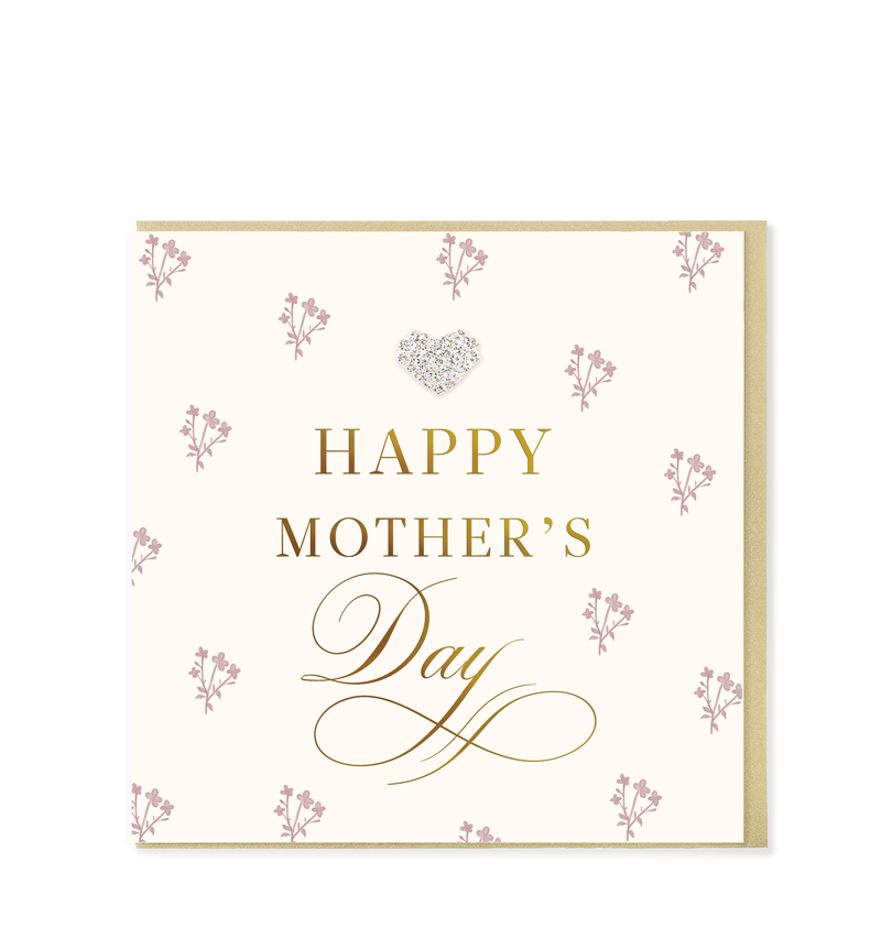 A gorgeous luxury greetings card with gold foil detailing. Hand embellished with a diamanté heart jewel. Printed on high quality FSC card and presented with a gold envelope. Cello wrapped. Blank inside.