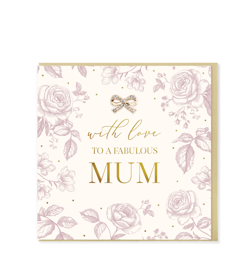 A gorgeous luxury greetings card with gold foil detailing. Hand embellished with a diamanté and gold bow jewel. Printed on high quality FSC card and presented with a gold envelope. Cello wrapped. Blank inside.