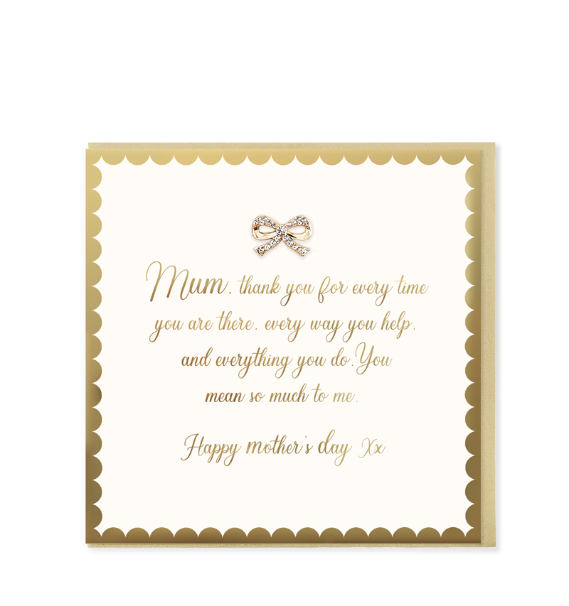 A gorgeous luxury greetings card with gold foil detailing. Hand embellished with a diamanté and gold bow jewel. Printed on high quality FSC card and presented with a gold envelope. Cello wrapped. Blank inside.