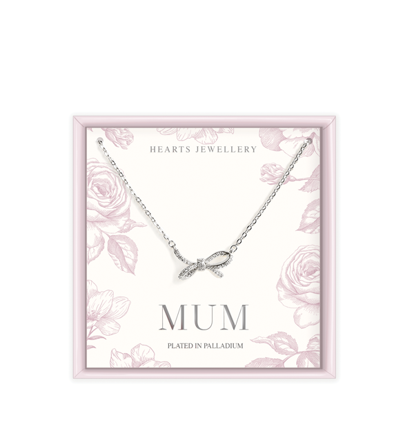 Palladium Plated Crystal bow Pendant Necklace - Mum