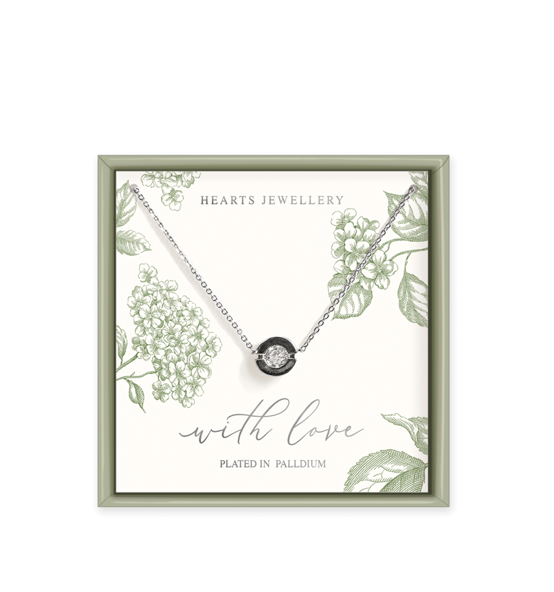 Palladium Plated Crystal Disc Pendant Necklace - With Love