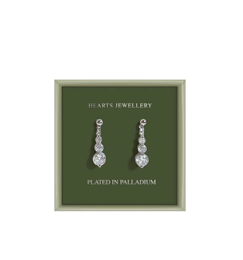 Add a touch of sparkle to your outfit with these delicate and stylish pair of earrings for pierced ears. Palladium plated with Cubic Zirconia crystals. Presented in a lovely box of your choice. A perfect gift idea.