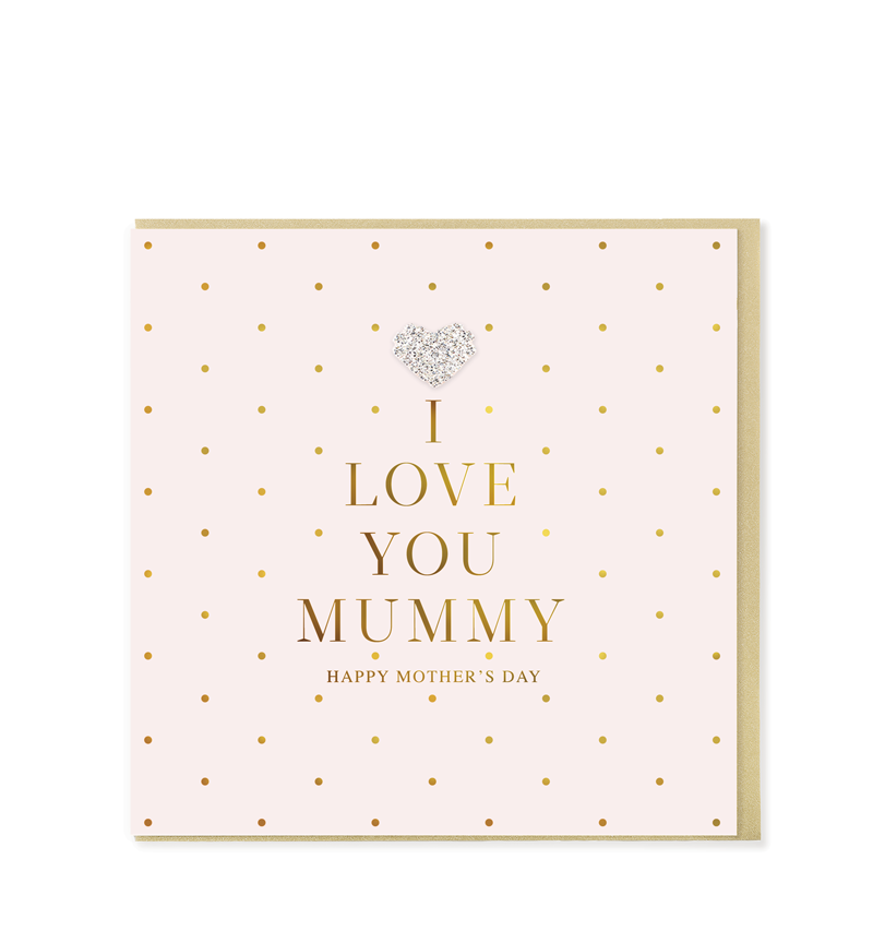Our gorgeous luxury greetings card with Gold foil sentiment and hand embellished with a diamanté heart jewel. This card is printed on luxury FSC board and presented with a pearlescent Gold envelope and cello wrapped. Blank inside.