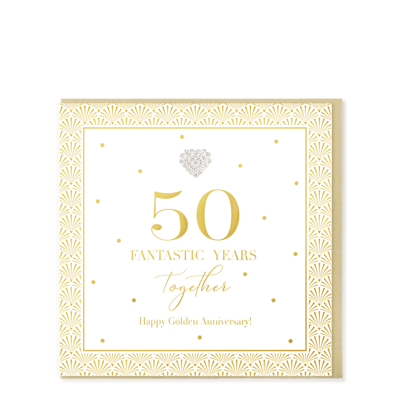 Our gorgeous luxury greetings card with Gold foil sentiment and hand embellished with a diamanté heart jewel. This card is printed on luxury FSC board and presented with a pearlescent Gold envelope and cello wrapped. Blank inside.