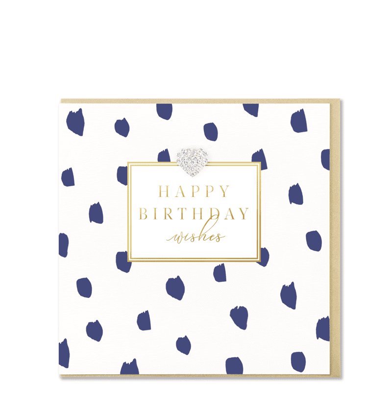 Our gorgeous luxury greetings card with Gold foil sentiment and hand embellished with a diamanté heart jewel. This card is printed on luxury FSC board and presented with a pearlescent Gold envelope and cello wrapped. Blank inside.