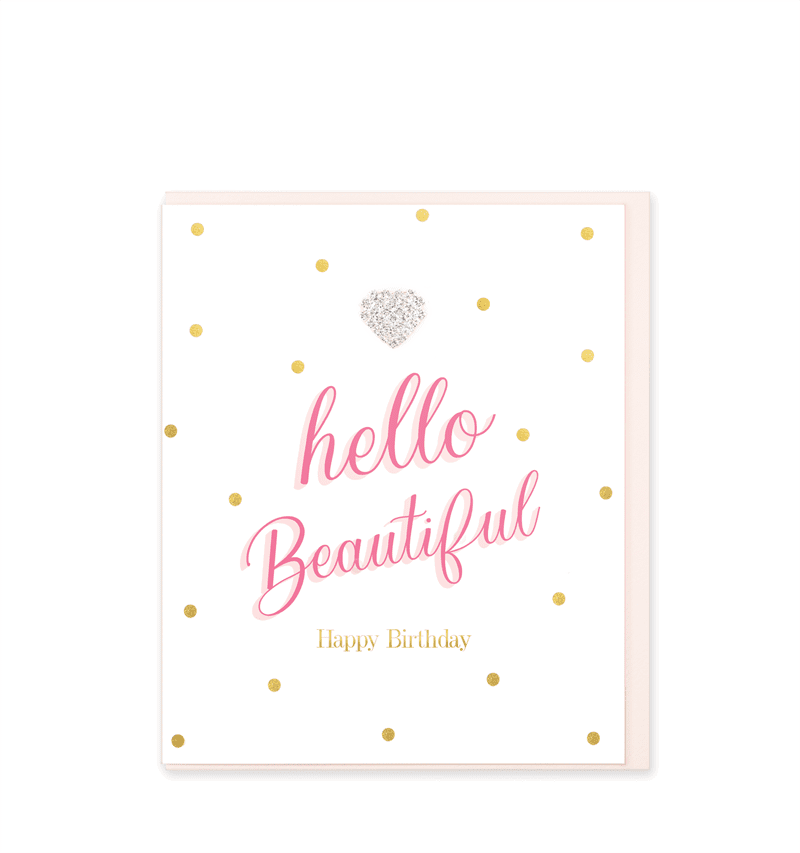 Our gorgeous luxury greetings card with Gold foil sentiment and hand embellished with a diamanté heart jewel. This card is printed on luxury FSC board and presented with a luxury Pink envelope and cello wrapped. Blank inside.