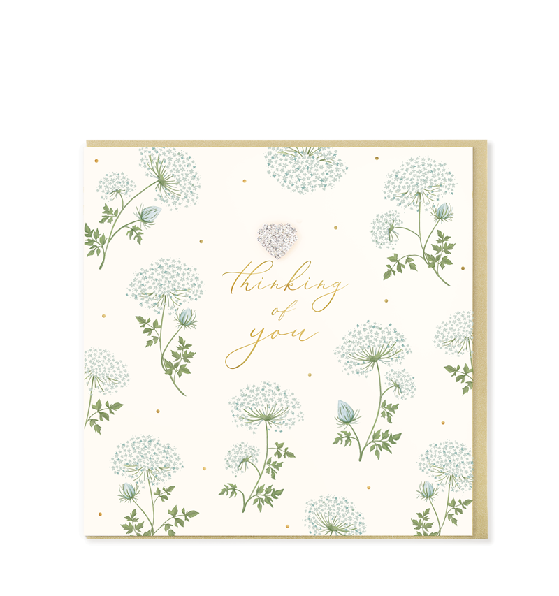Our gorgeous luxury greetings card with Gold foil sentiment and hand embellished with a diamanté heart jewel. This card is printed on luxury FSC board and presented with a pearlescent Gold envelope and cello wrapped. Blank inside.