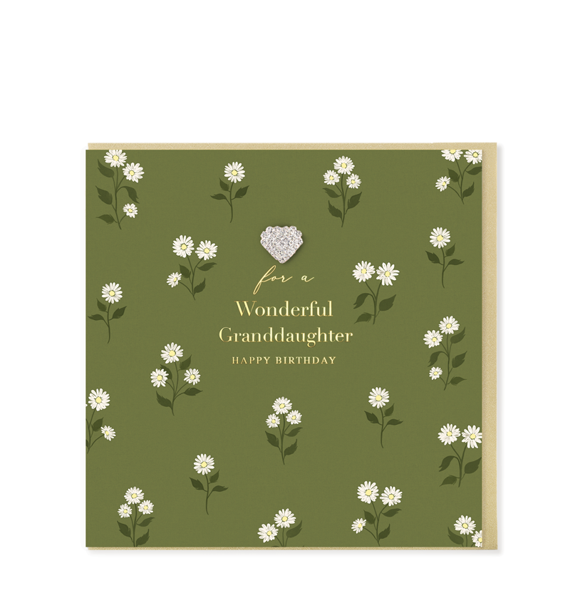 Our gorgeous luxury greetings card with Gold foil sentiment and hand embellished with a diamanté heart jewel. This card is printed on luxury FSC board and presented with a pearlescent Gold envelope and cello wrapped. Blank inside.